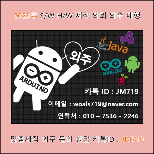 아두이노 외주대행 제작의뢰 맞춤제작 여기로 오세요!!! 아두이노방송소품제작 , 방탈출카페전자장치시스템 , 아두이노프로세싱외주 , 아두이노미디어아트외주 , 아두이노구글스프레드시트연동 , 아두이노키보드마우스매크로 , 아두이노발명품제작 , 정부지원과제 , IOT사물인터넷 , 스마트팜구축 , 앱인벤터외주, 코딩외주, 코드외주 등등 다수의 외주경험이 있습니다. 하단 포스터 연락처로 편하게 문의주시면 빠른상담 진행해드리겠습니다. 샘플영상 : 아두이노 물건분실방지 외주 #아두이노방탈출카페 #아두이노방탈출게임 #아두이노방송소품외주의뢰 #윈도우응용프로그램개발외주의뢰 #아두이노외주 #아두이노코딩외주 #아두이노대행 #아두이노제작의뢰 #안드로이드외주 #안드로이드대행 #안드로이드제작의뢰 #윈도우응용프로그램외주 #윈도우응용프로그..