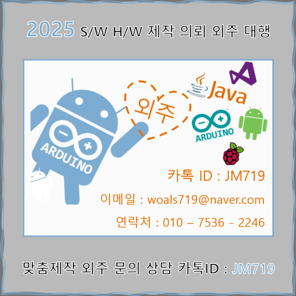 아두이노 외주대행 제작의뢰 맞춤제작 여기로 ~ 아두이노방송소품제작 , 방탈출카페전자장치시스템 , 아두이노프로세싱외주 , 아두이노미디어아트외주 , 아두이노구글스프레드시트연동 , 아두이노키보드마우스매크로 , 아두이노발명품제작 , 정부지원과제 , IOT사물인터넷 , 스마트팜구축 , 앱인벤터외주, 코딩외주, 코드외주 등등 다수의 외주경험이 있습니다. 하단 포스터 연락처로 편하게 문의주시면 빠른상담 진행해드리겠습니다. 샘플영상 : https://www.youtube.com/@android_arduino/videos 안드로이드아두이노#안드로이드 #아두이노 #윈도우프로그램 #앱인벤터 #안드로이드스튜디오 #비쥬얼스튜디오 #데이터베이스연동 외주 대행 시제품제작 맞춤제작 포트폴리오www.youtube.com #..